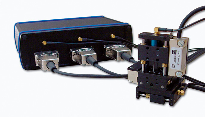These systems are driven by a new developed, innovative piezo inertial drive, which combines high resolution in the nm-range with large travels up to 50 mm. Together with piezo controllers with very low power consumption this permits main voltage free applications in laboratories and out of doors.